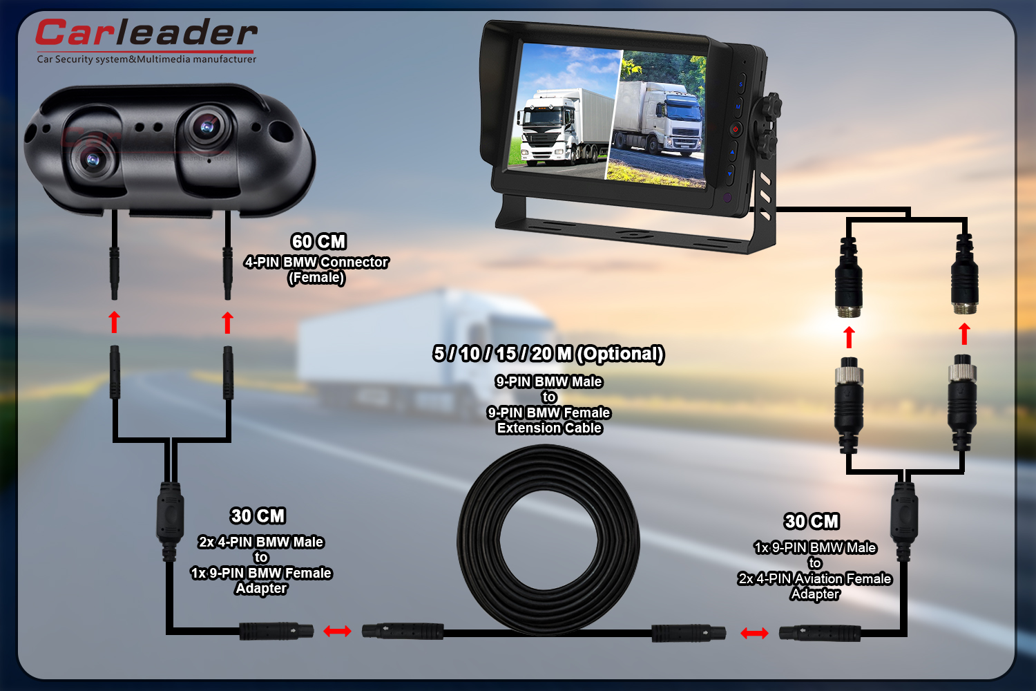کارلیدردو راهحل سیمکشی مختلف را برای دوربین معکوس دو لنز سنگین AHD Starlight ارائه میکند تا نیازهای مختلف سیمکشی را برآورده کند: