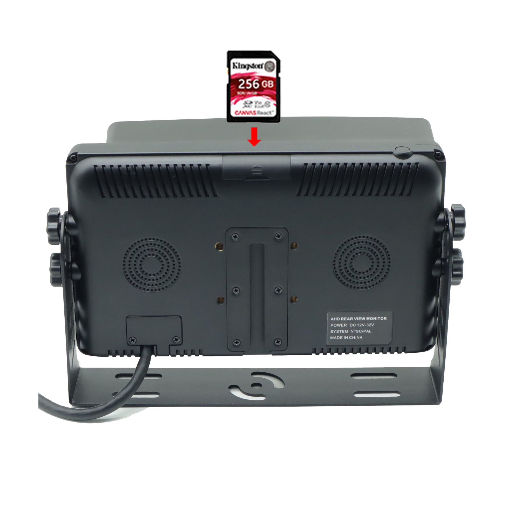 ورودی های 4CH AHD Carleader 7 اینچ مانیتور نمایش چهار نما از عملکرد ضبط DVR پشتیبانی می کند، با اسلات کارت SD در پشت مانیتور، حداکثر ظرفیت تا 256 گیگابایت است. ویژگی های با عملکرد ضبط حلقه، می تواند به طور خودکار فیلم دوربین و پخش را ضبط کند.