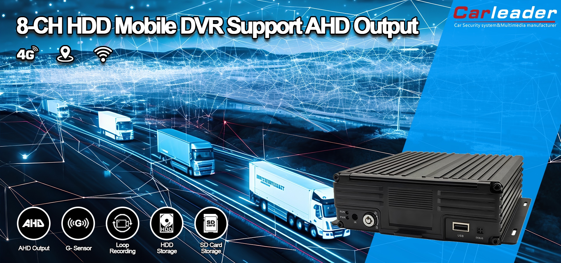 کارلیدر8CH 1080P HDD موبایل DVR پشتیبانی از خروجی AHDیک راه حل قابل اعتماد، مقیاس پذیر و غنی از ویژگی ها برای نظارت تصویری موبایل مدرن ارائه می دهد که ایمنی، امنیت و اطلاعات عملیاتی در جاده را تضمین می کند.