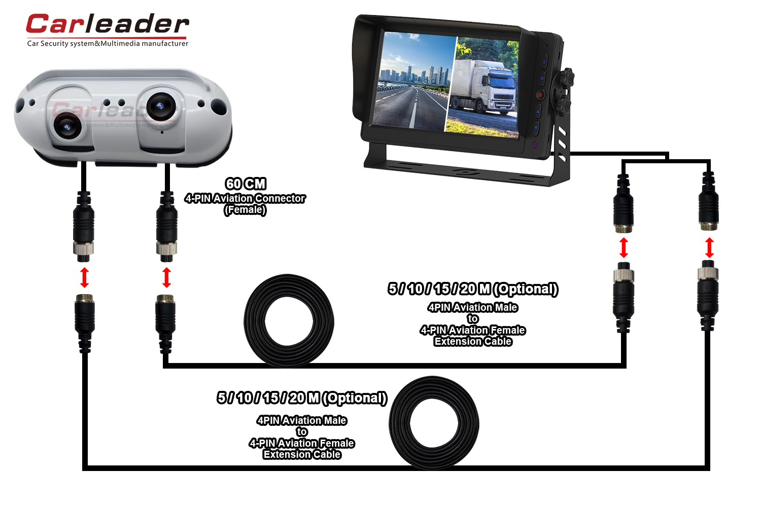 کارلیدردو راهحل سیمکشی مختلف را برای دوربین دید عقب سنگین دو لنز AHD Starlight ارائه میکند تا نیازهای مختلف سیمکشی را برآورده کند: