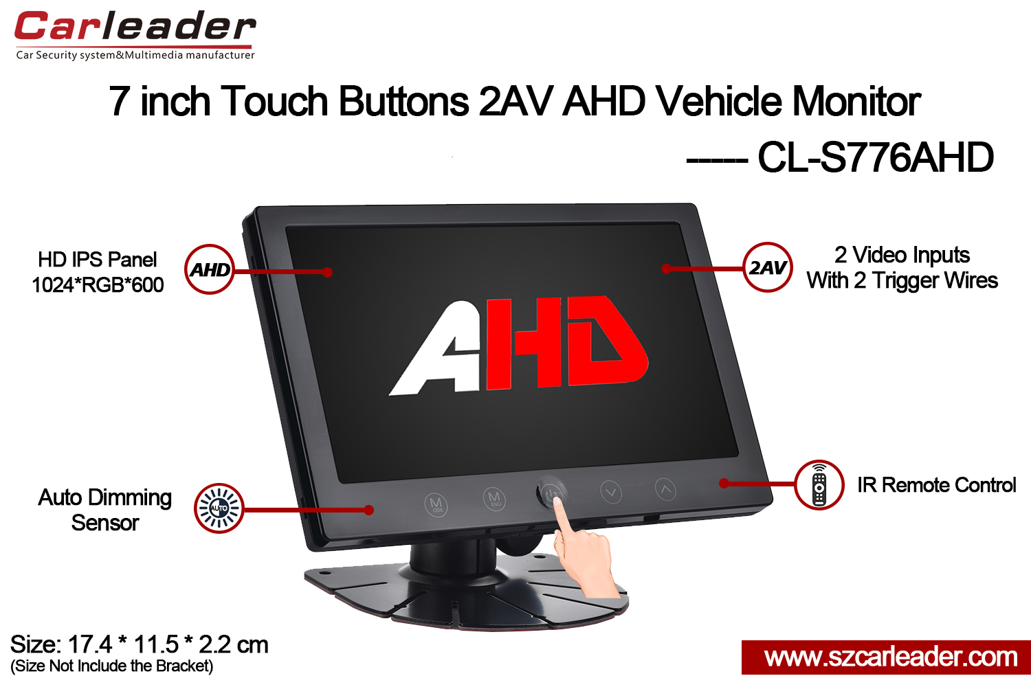 کارلیدرصفحه نمایش 7 اینچی IPS دکمه های لمسی ورودی 2CH AHD مانیتور وسایل نقلیه سنگینایده آل برای مصارف خودرویی، امنیتی، دریایی و صنعتی استدوام، انعطاف پذیری و عملکرد صفحه نمایش با کیفیت بالا را در یک بسته قابل اعتماد ترکیب می کند.
