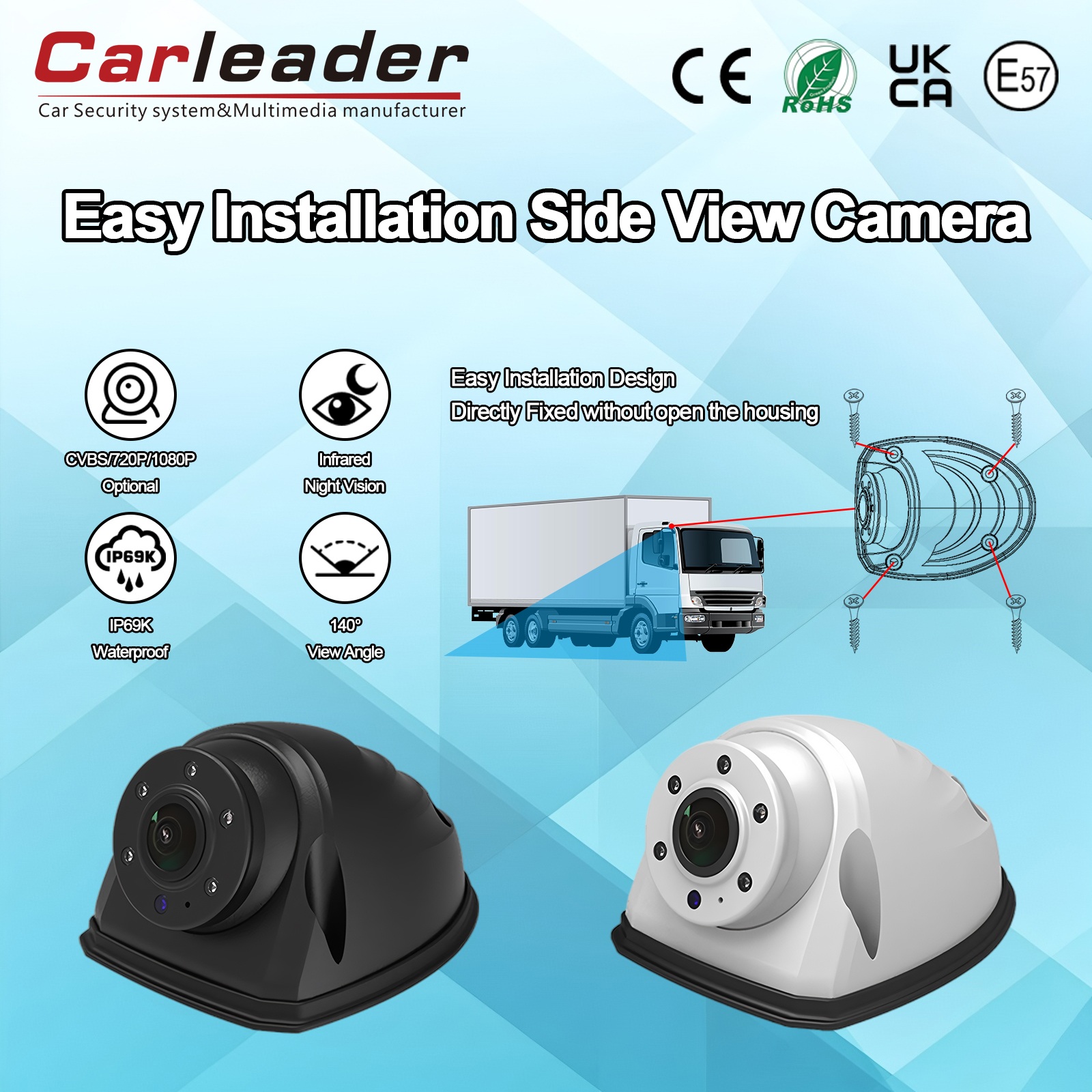 کارلیدرAHD نصب سریع دوربین نمای جانبی سنگینیک دوربین AHD نمای جانبی با عملکرد بالا است که برای ارائه دید واضح در هر شرایط آب و هوایی سخت طراحی شده است. این سیستم دوربین کامپکت که عمدتاً برای عملکرد چند منظوره و بادوام طراحی شده است، برای وسایل نقلیه تجاری، تجهیزات صنعتی و کاربردهای امنیتی که در آن به دید محیطی واضح نیاز است، مناسب است.
