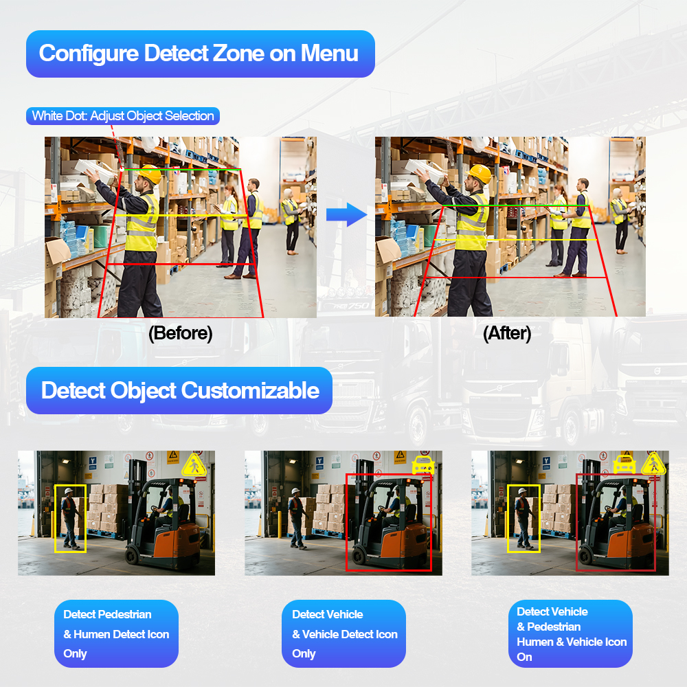 تشخیص AI-Powered: الگوریتم هوش مصنوعی پیشرفته به طور دقیق عابران پیاده و وسایل نقلیه را در زمان واقعی شناسایی می کند و ایمنی فعال برای وسایل نقلیه تجاری، ماشین آلات سنگین و عملیات ناوگان را تضمین می کند.